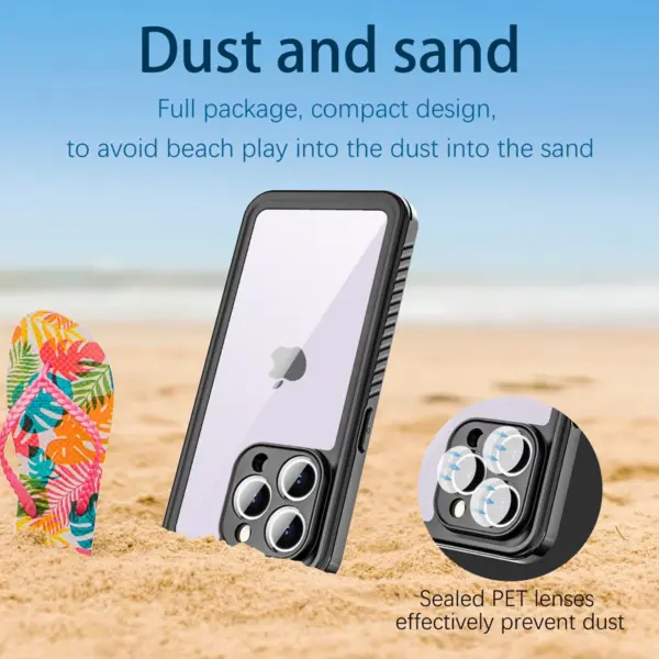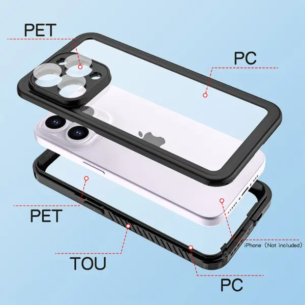 1. Full coverage waterproof snowproof shockproof phone case, transparent back and front and black rubber frame