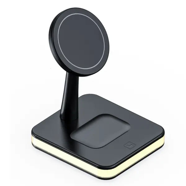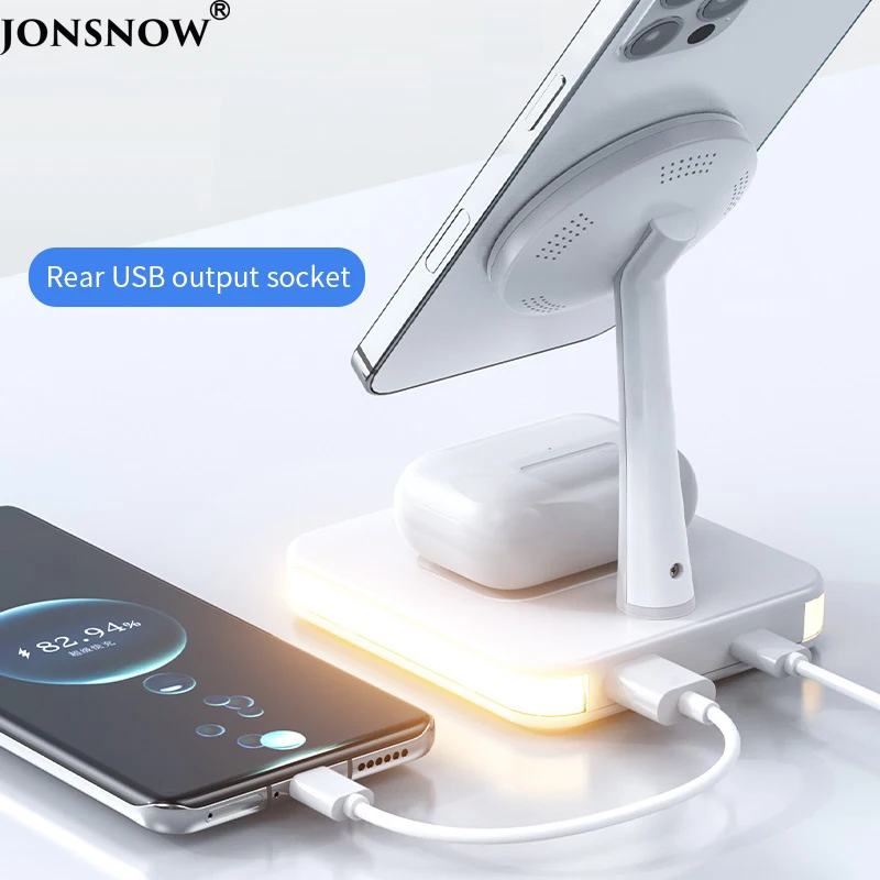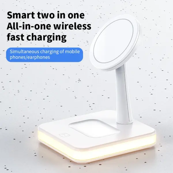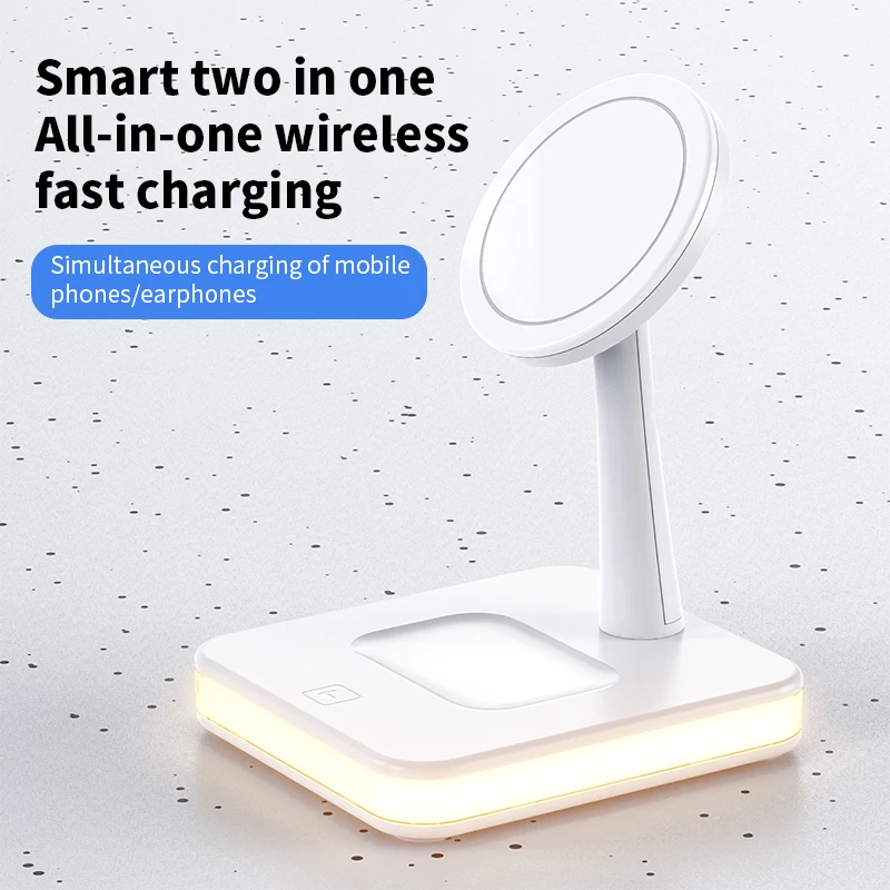 For Magsafe Magnetic Wireless Charger Bracket for iPhone Stand for AirPods Pro Holder Wired Charging Dock Base for Android Phone with Night Lamp for Samsung for Huawei for Xiaomi Each package includes 1pc charging stand, excludiing phone, for AirPods earphone, for Apple Watch or other Smart watch Advantage : 1. For Magsafe Magnetic fast wireless…