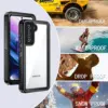 IP68 Waterproof Case for Samsung Galaxy S22 Ultra Shell Swimming Diving Shockproof Cover for Samsung S22+Full Protection Cases Capa Coque Fundas Advantage: 1.Transparent 360 Full Protection Hard cover+Rubber Frame, for taking pictures and videos underwater. 2.Waterproof shockproof armor phone Case, full converage protection for phone 3.Soft strip around the inner frame of the case, protect…