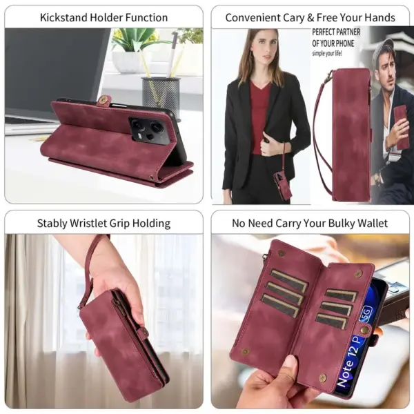 Multi-pocket Leather Wallet Case for Redmi 12C 13C Phone Bumper Magntic Flip Handbag Wallet Pouch with Zip Wrist Strap Card Slot Advantage 1.Luxury leather wallet case with card slot , anti scratch,anti fingerprint 2.Foldable phone stand holder 3.Fill coverage protective zip pouch with multi-pockets, large storage capacity 4. Fashion practical handbag with wrist strap ,easy…