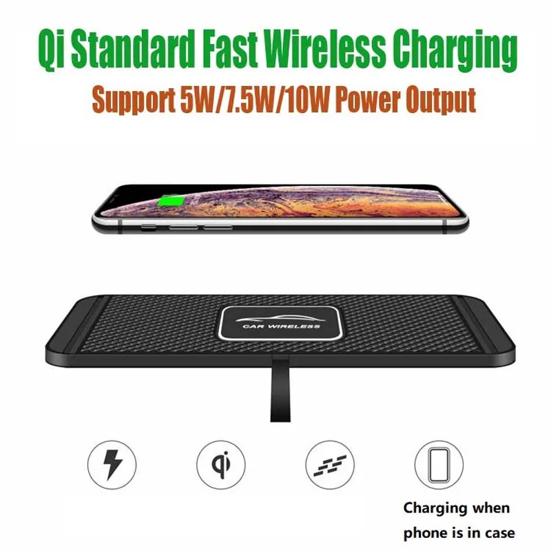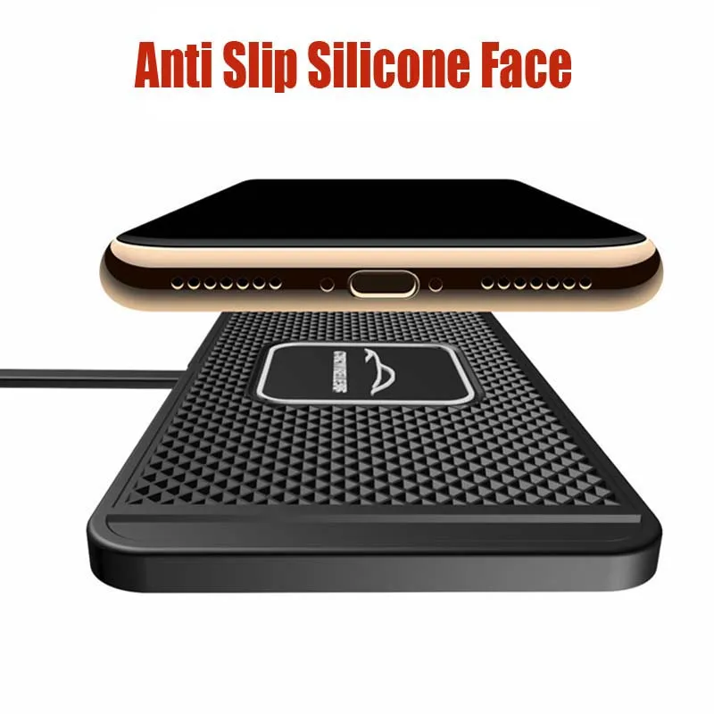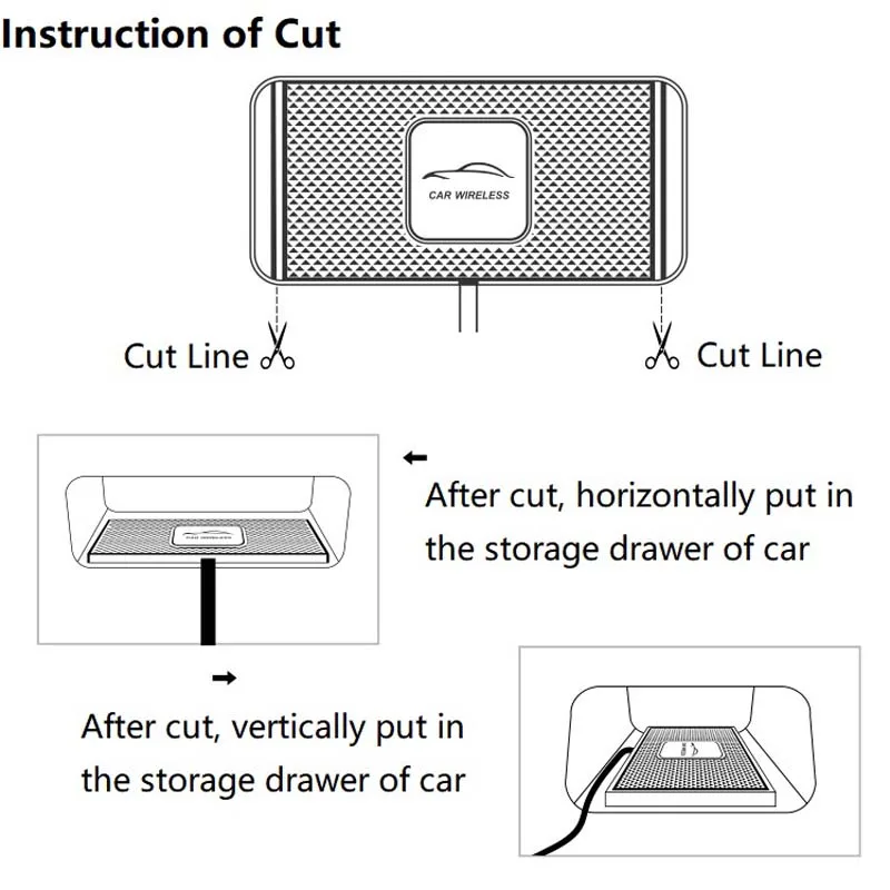 1.The wireless charging pad is designed for car storage drawer/ car armrest box . It is made in silicone, soft and powerful sticky , easy to sticky and stable,